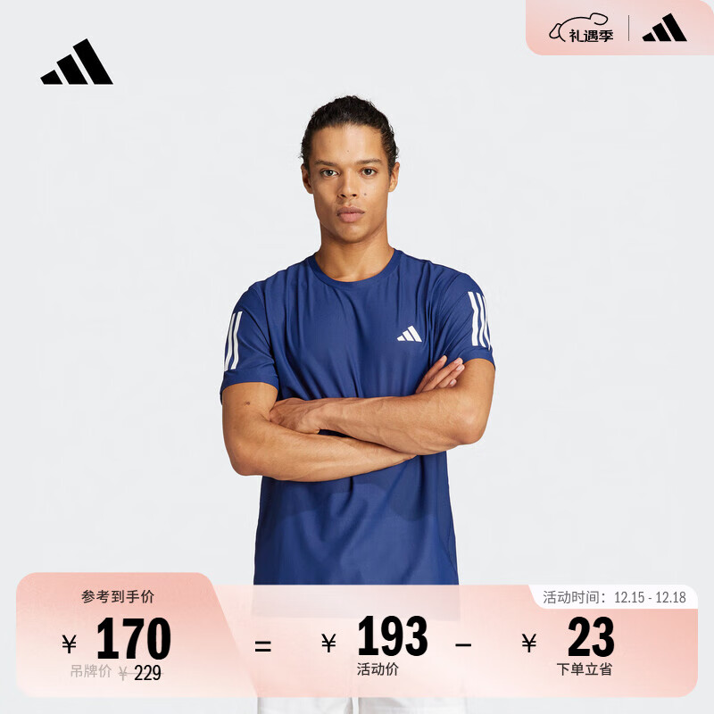 包邮 adidas舒适跑步运动上衣圆领短袖T恤男装夏季阿迪达斯官方 深蓝 S